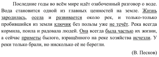 Последние годы во всём мире идёт озабоченный разговор о воде. Вода становится одной из главных ценностей на земле. Жизнь зародилась, осела и развивается около рек, и только-только пробившийся из земли ключик без пользы уже не течёт. Река всегда кормила, поила и радовала людей. Она всегда была частью их жизни, а сейчас приметы былого, взращённого на реке хозяйства исчезли. У реки только брали, но нисколько её не берегли.(В. Песков.)